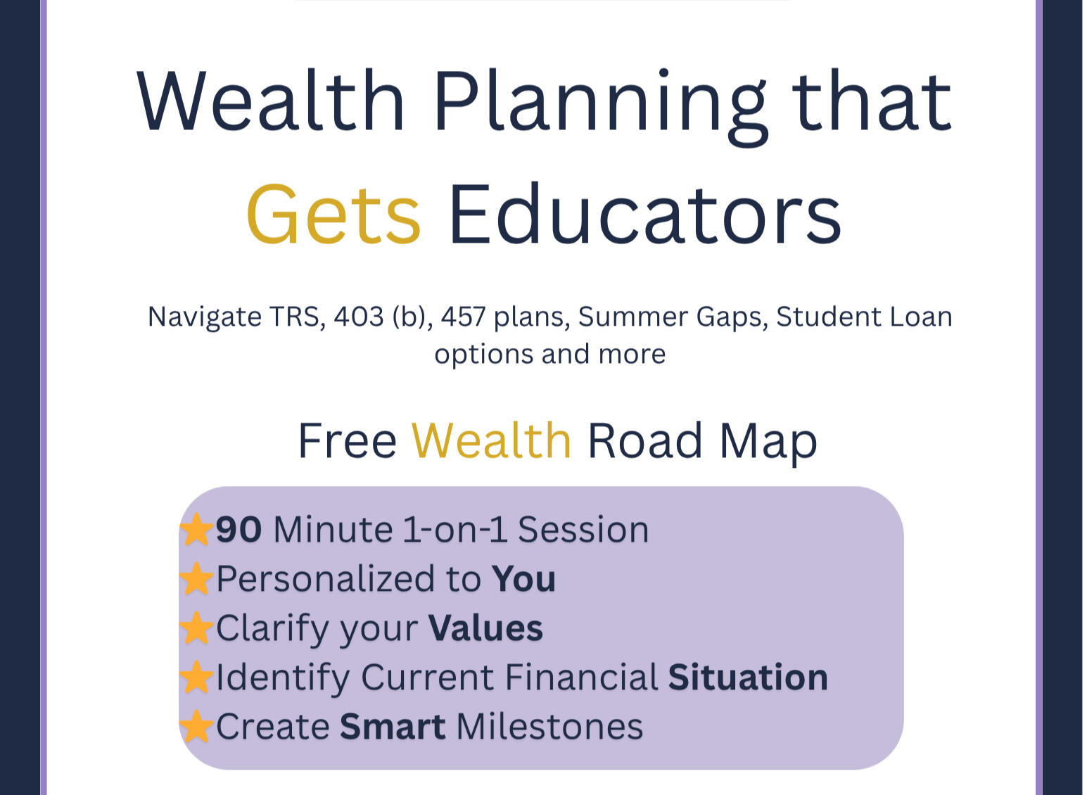 I felt this too.I've helped colleagues with their financial situation, talking with retirees and their Social security/TRS struggle. I've helped friends budget during the summer months, where we all took summer jobs. These experiences sparked a new passion.My approach isn't selling products. I don't sell insurance. I don't sell investments. I don't sell pre-made plans. I guide educators to: